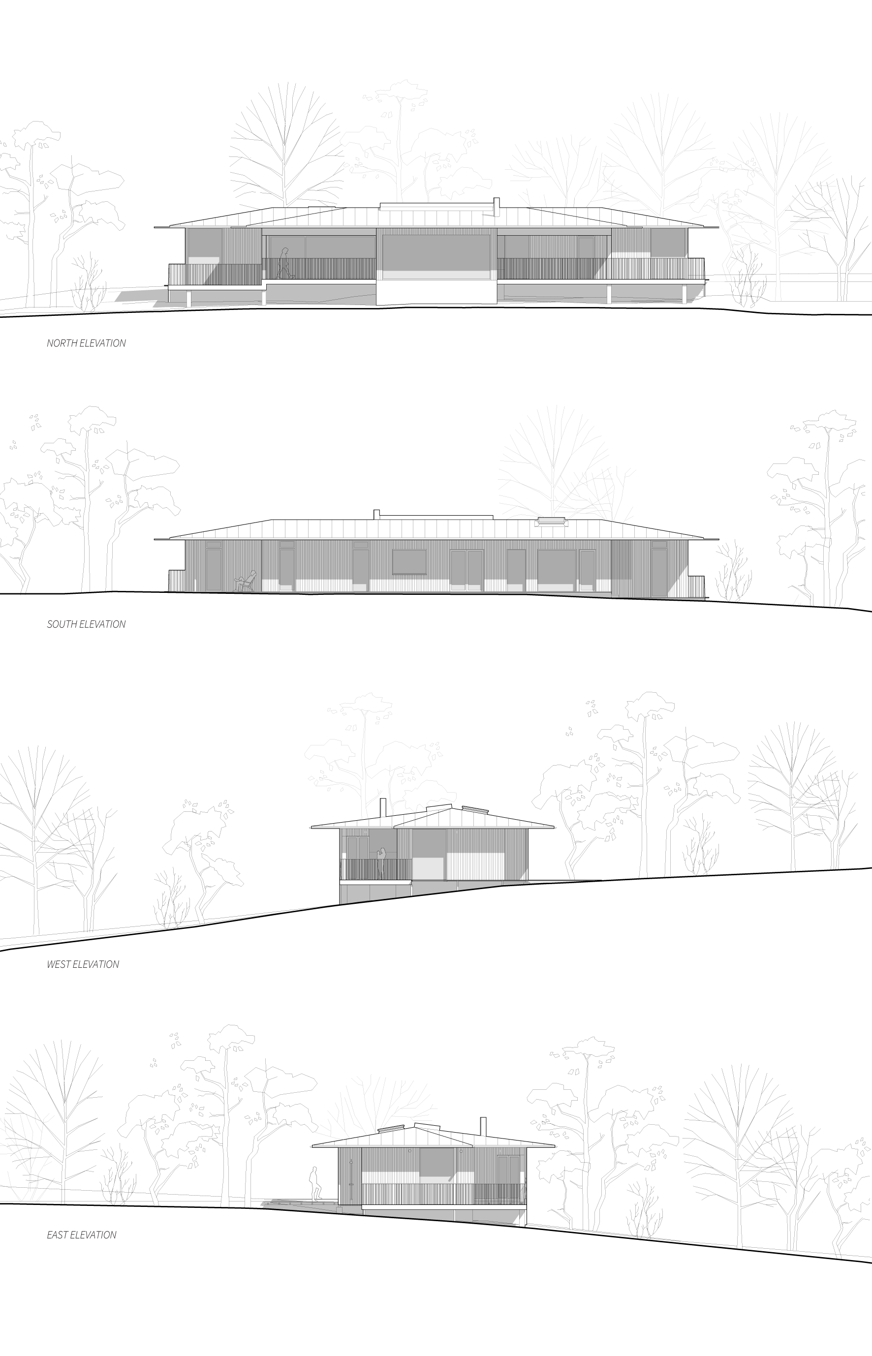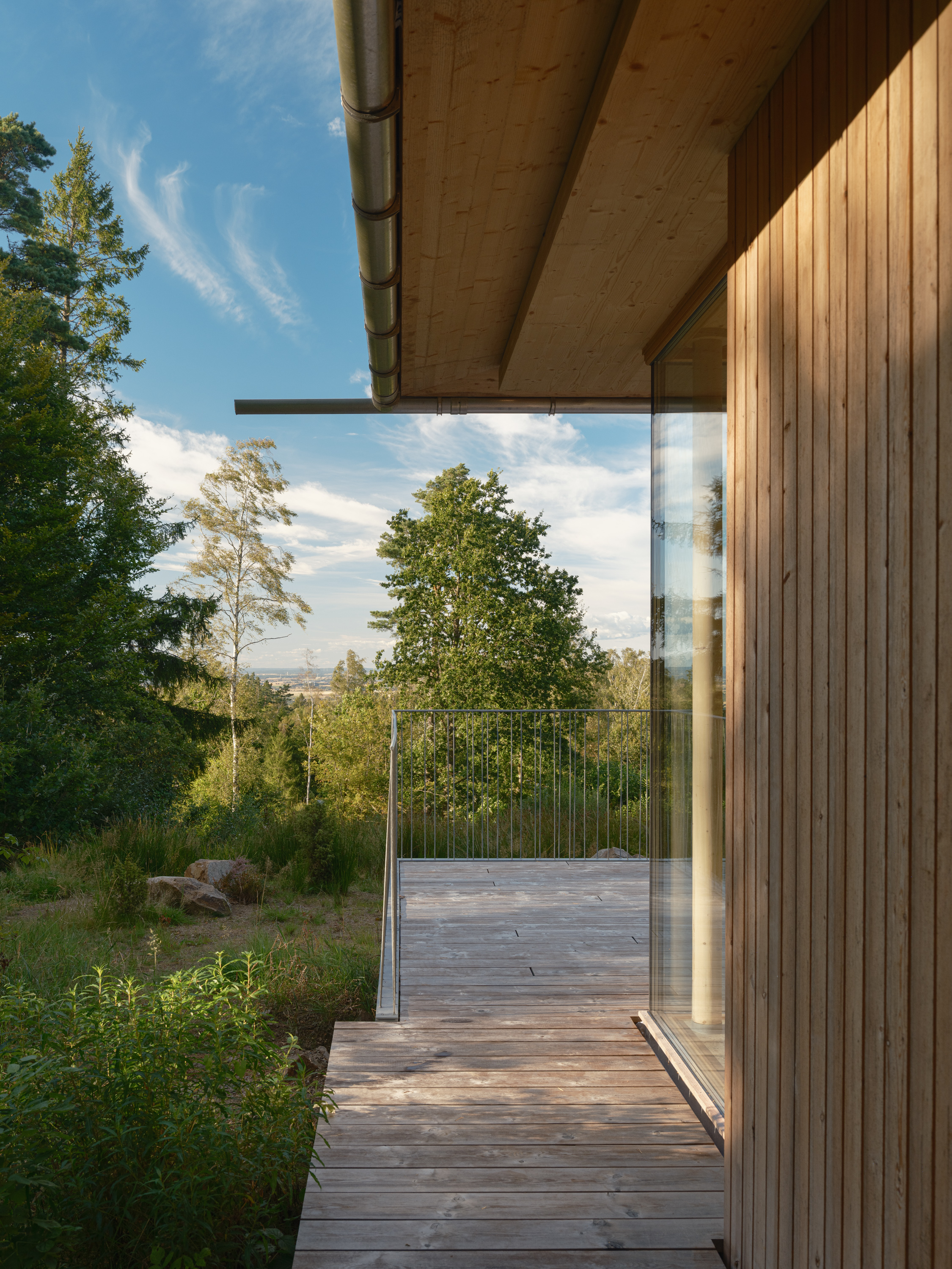 The surrounding nature, the spirit of the whole place is quite interesting and unique. The home is situated on a north-facing slope, in itself an unusual place for a summer cabin, within a sparse forest that used to be grazing land. The interplay of filtered light through the trees creates moments of intense atmosphere, where the sun rarely shines directly but the landscape constantly shifts in tone and texture. “I couldn’t imagine designing any building without trying to channel the energy of the place,” Johan reflects.